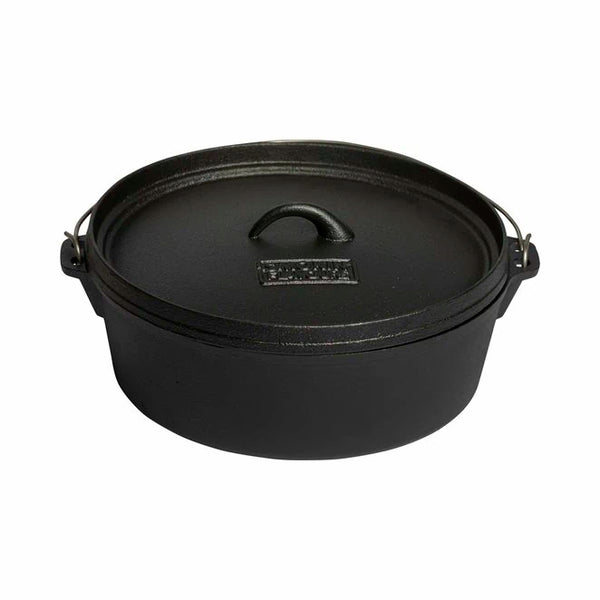 De meest veelzijdige pan op de BBQ! Gebruik de pan bijvoorbeeld als vorm voor een brood, braad er op hoge temperatuur vlees in aan of maak er een lekkere soep of stoofpot in.. het kan allemaal in deze preseasoned Dutch oven! De pan heeft een diameter van 31cm en inhoud van 4,5L.